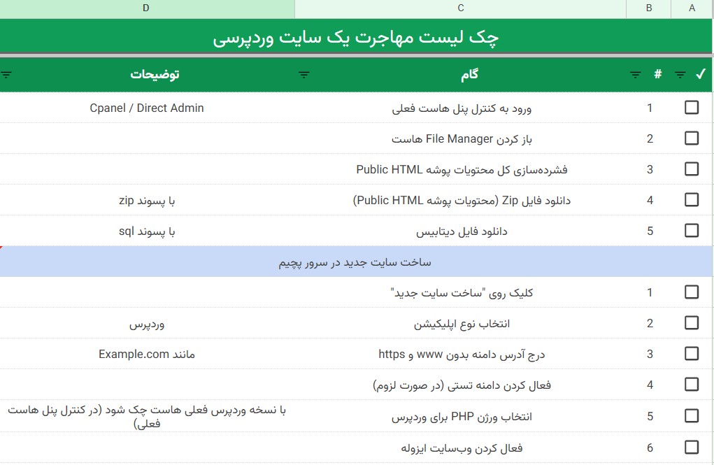 در این چکلیست به صورت گامبهگام، تمامی مراحل مهاجرت یک سایت وردپرسی روی سرورهای پچیم درج شده است.
